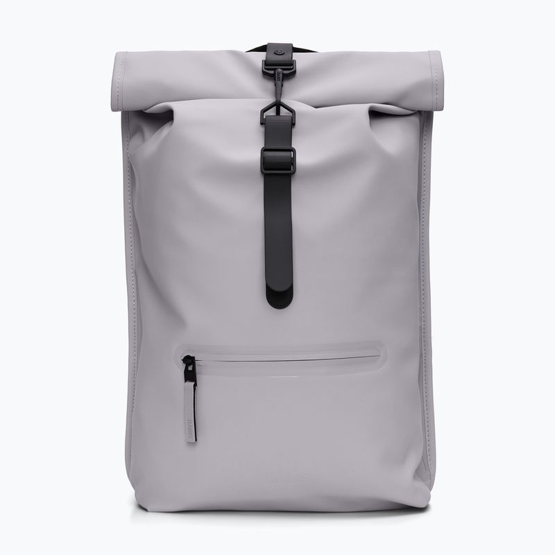Zaino Rains Rucksack Rolltop W3 13 + 4 l - Uno zaino elegante e funzionale realizzato in tessuto PU impermeabile (8000 mm), con apertura rolltop e spallacci regolabili. Perfetto per i tragitti quotidiani, con una tasca per laptop da 16" e una tasca frontale con zip.