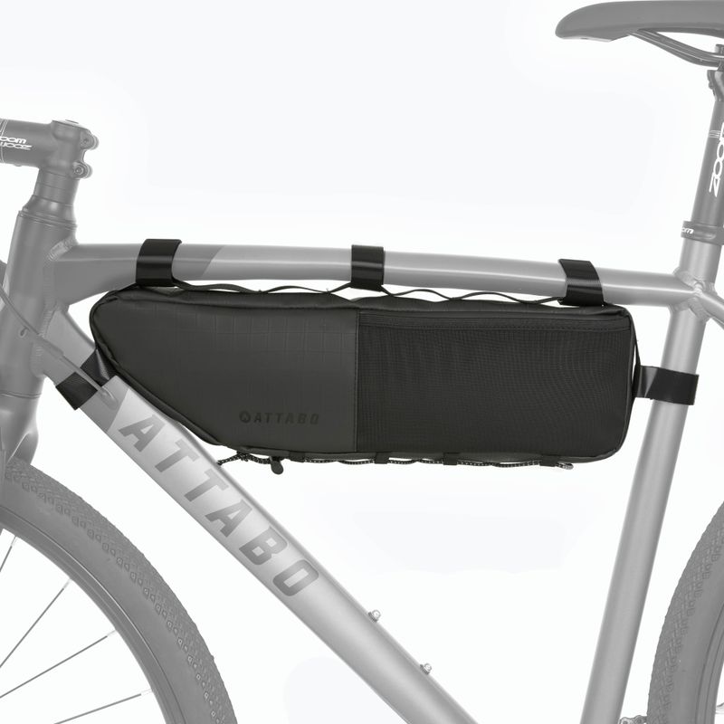 Borsa da bicicletta sotto il telaio ATTABO Underra M 3,5 l nera è una scelta pratica per i ciclisti che cercano una soluzione di trasporto compatta e funzionale. Il modello è stato progettato pensando agli utenti che praticano bikepacking, per i quali è importante la disposizione centrale del bagaglio nel telaio della bicicletta. Posizionare la borsa nel triangolo del telaio garantisce un bilanciamento ottimale e facilita l'accesso agli oggetti trasportati durante la guida.