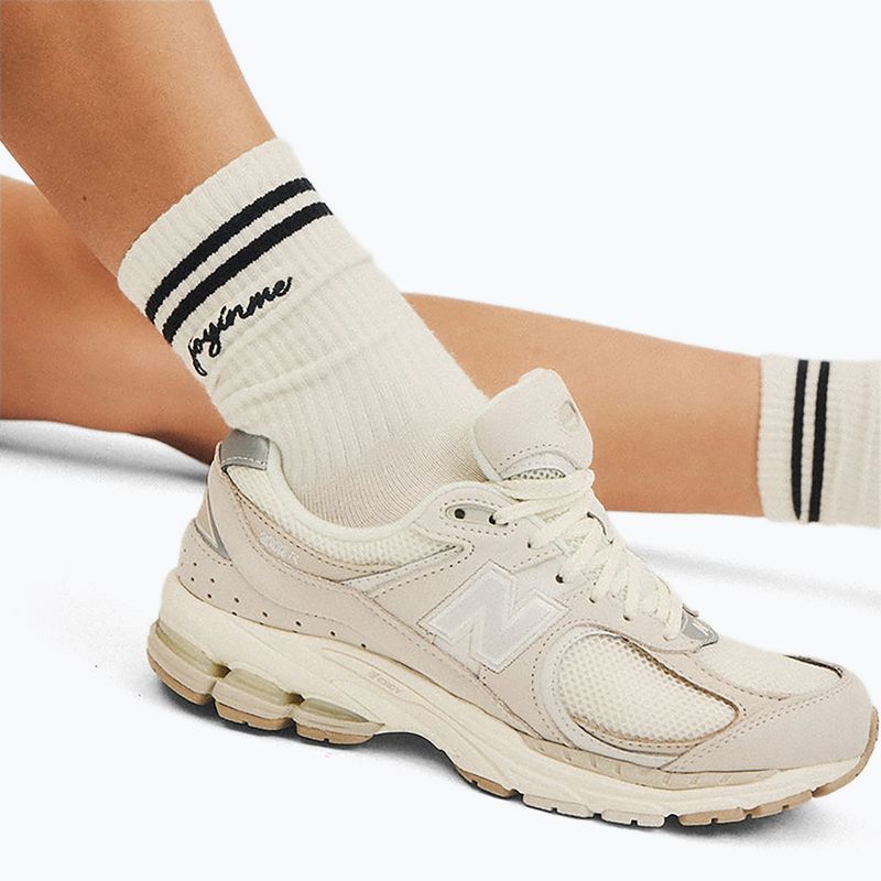 Calze JOYINME Statement – chiare, a righe con strisce nere e logo, aggiungono un carattere sportivo e uno stile urbano. Si abbinano perfettamente a sneakers, tute, leggings o jeans e, accoppiate a una felpa larga e a una giacca in pelle, richiamano l'atmosfera degli anni '90.