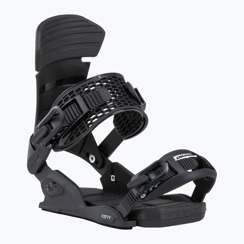 Il Drake Fifty è un modello che si distingue non solo per la robustezza, ma anche per la leggerezza, che influisce positivamente sul comfort durante l'uso prolungato. La costruzione degli attacchi consente un ampio intervallo di regolazione, permettendo un rapido adattamento alle preferenze individuali di ogni snowboarder. Le soluzioni tecnologiche applicate rendono questa variante una scelta versatile per la guida su piste preparate, snowpark e in fuoripista.