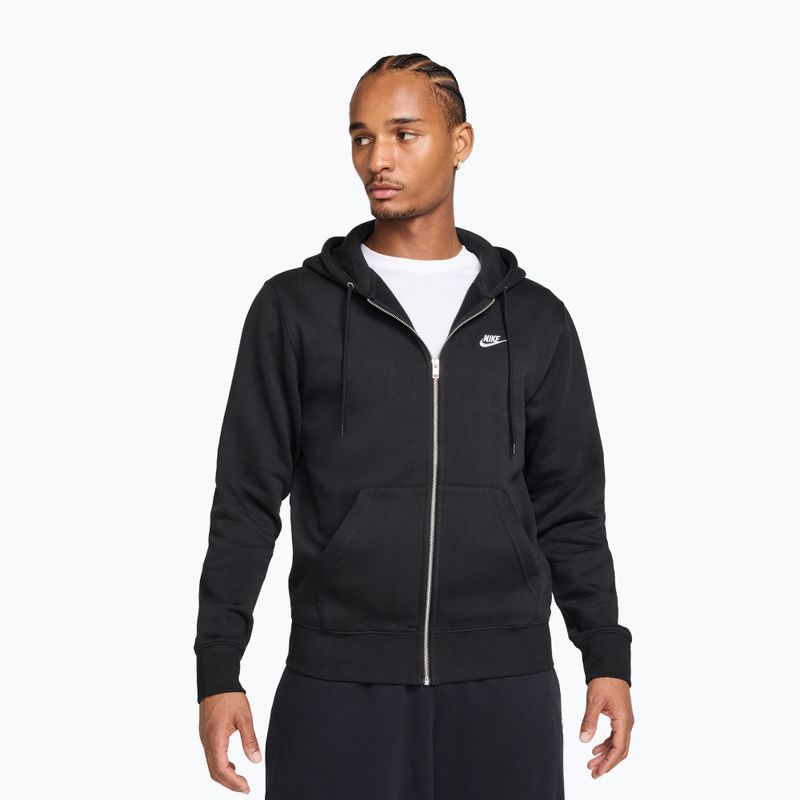 Felpa uomo Nike Club Full Zip Hoodie Black/Black/White