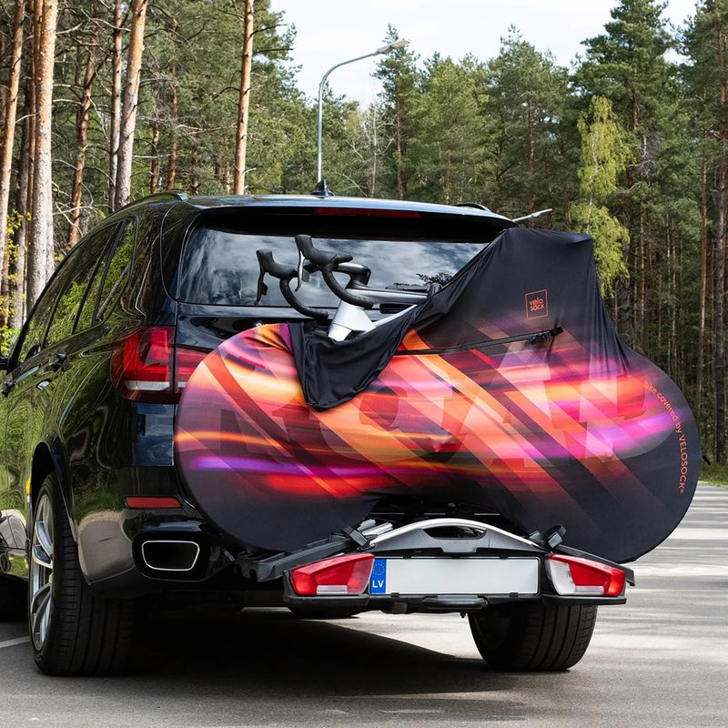 Copertura per bicicletta VELOSOCK Speed Orange Road WR protegge le biciclette da corsa dall'umidità e dalla leggera pioggia durante il trasporto su quasi tutti i portabici per auto. Il materiale elastico e i numerosi punti di fissaggio garantiscono una vestibilità stabile, e le coperture per pedali incluse proteggono la bicicletta dallo sporco.