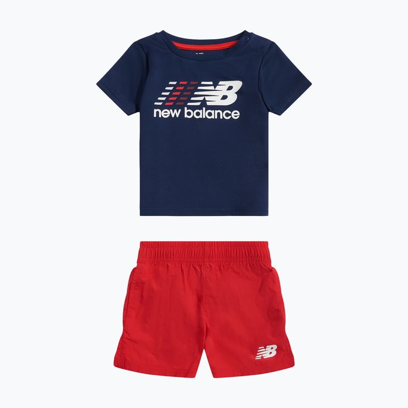 Il completo per bambini New Balance Contrast Athletic Tee & Nylon Short è un leggero set sportivo composto da una maglietta in jersey di poliestere e da pantaloni corti in nylon. Garantisce comfort e libertà di movimento durante l'attività.